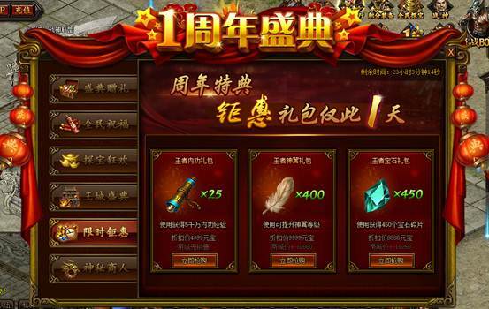 活动期间,内功、神翼、宝石礼包限时折扣,超低价格,不容错过!