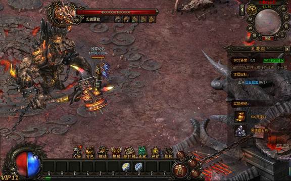 5.炎魔狱5层终极boss-熔岩暴君,击杀有几率掉落12转首饰装备,等待诸位勇士前往挑战;