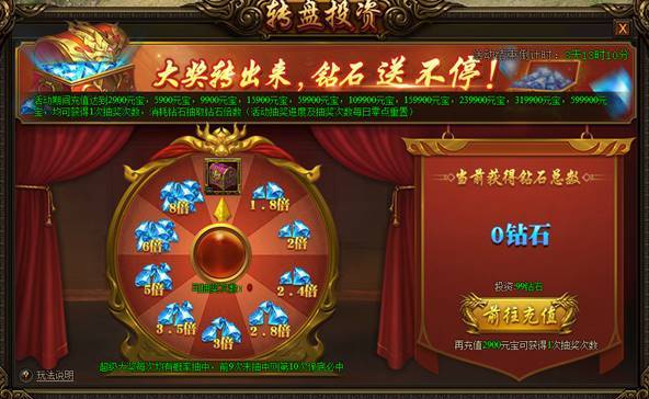 3. 获得的钻石返利数量等于该次投资消耗的钻石数乘以所抽取的对应倍数