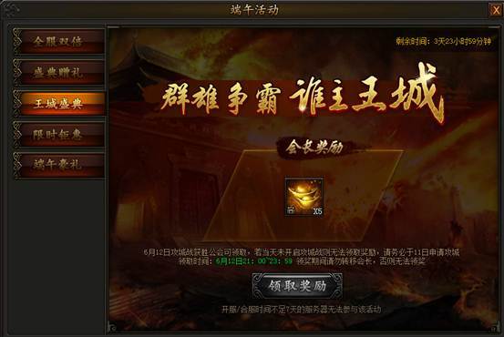 群雄争霸,谁主王城!王城盛典荣耀开启,6月12日参与攻城战并取得胜利的公会可领取海量元宝奖励!